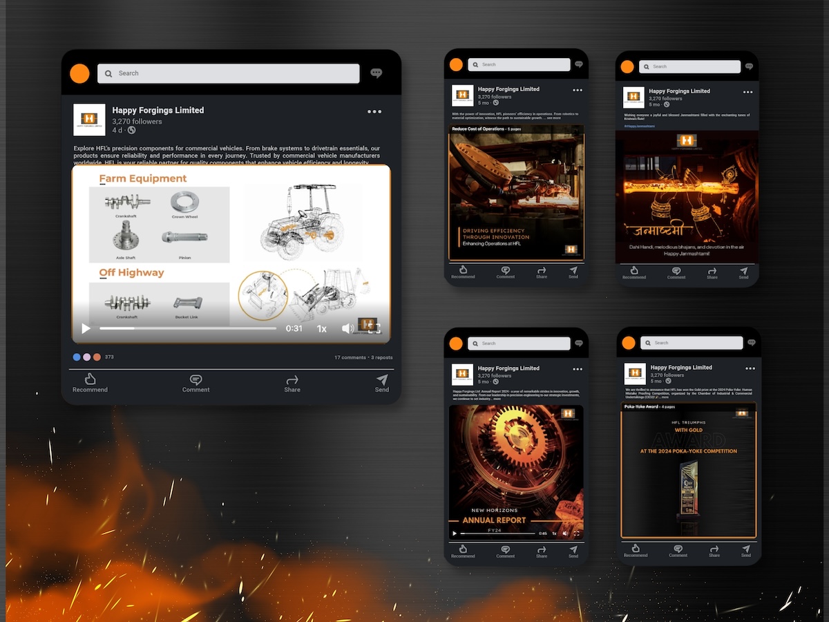 Happy Forgings Limited (HFL), a leader in the forging industry since 1979, aimed to modernize its brand identity to align with international standards and strengthen its global presence. Despite being a B2B company, HFL recognized the need for a stronger digital presence, strategic communication, and enhanced brand visibility to connect with a diverse global audience.